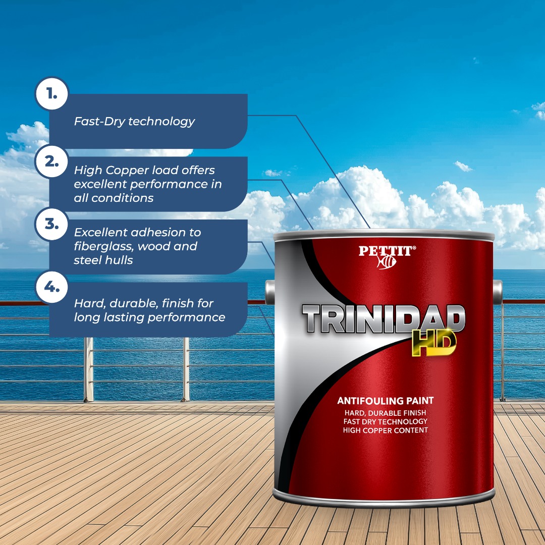 A good choice for powerboat or sailboat use in tropical and other warm waters where extreme fouling exists. Trinidad HD is compatible over most hard antifouling finishes. Trinidad HD is backed up by the industry's strongest warranty. HD (Hull Defense 18 Month Limited Warranty) offers peace of mind to any boater in every harbor.