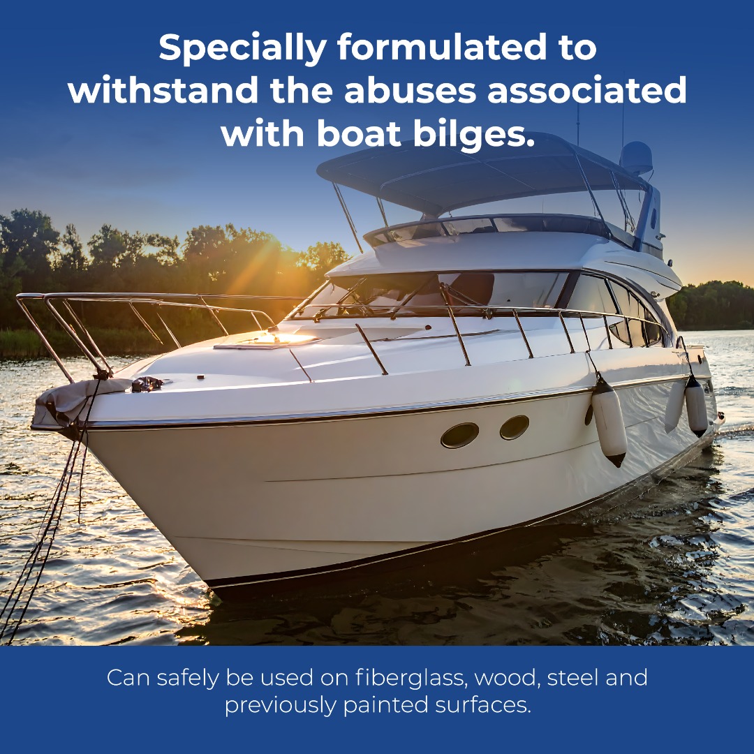 Pettit’s EZ Bilge is a durable high-performance alkyd finish specially formulated to withstand the abuses associated with boat bilges. The hardwearing finish is resistant to antifreeze, grease, gasoline, diesel fuel, and engine oil. Its tough resilient surface will stand up to years of abrasion and wear. EZ-Bilge utilizes a high-solids formula that is easy to apply by brush, roller or spray and provides excellent coverage. Like other Pettit “EZ” products, EZ-Bilge provides the simplest way to achieve optimum results with minimum effort. Available in white and gray finishes.