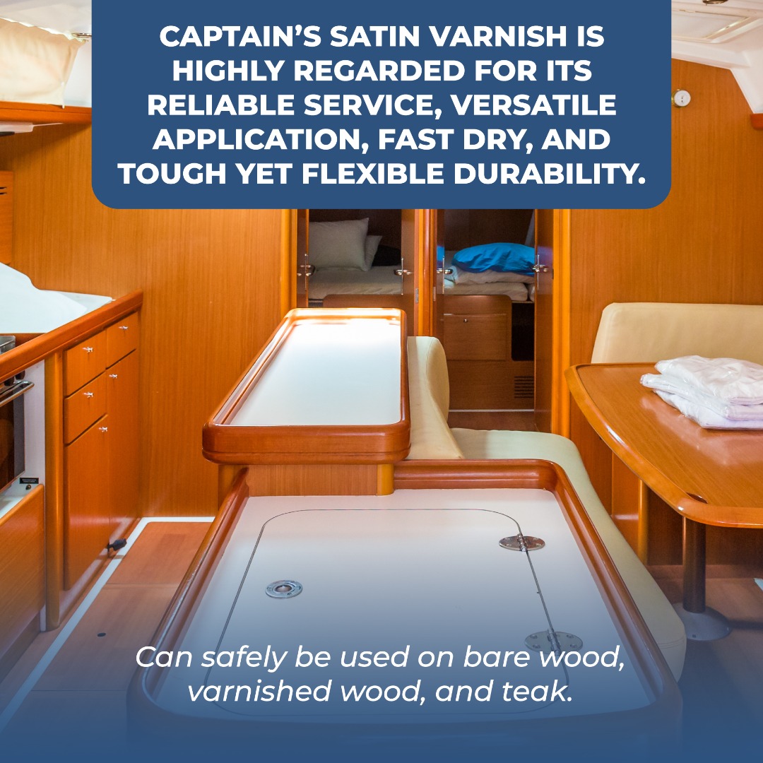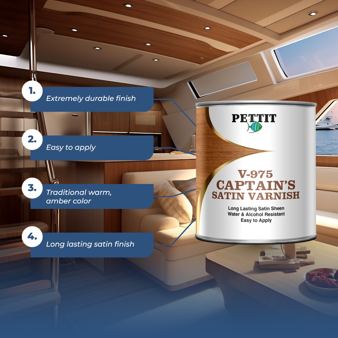 Captain’s Satin Sheen Varnish V-975 is specifically designed to enhance the beauty of interior woodwork with its soft, satin finish. Its pale, durable, long lasting polyurethane coat is water and alcohol-resistant. Satin Sheen is easy to apply and is intended for interior use only. Captain’s Satin Sheen Varnish is preferred by those professionals and do-it-yourselfers who derive pride and pleasure from quality brightwork.